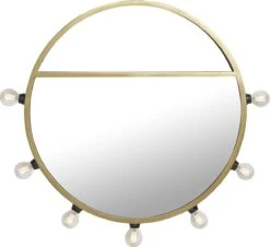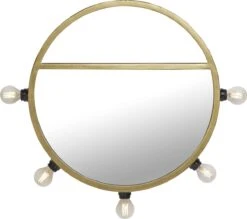 PR Home Bea Wandspiegel Matt Gold Aus Metall 60cm Rund Mit Beleuchtung U. Ablage 5x E14