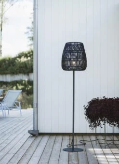 PR Home Agnar Saigon Terrassen Rattan Stehleuchte Grau Schwarz IP44 154cm E27