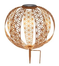 LED Solarleuchte Kugel Aus Streifen M. Dekorstanzungen Lebensblume Rostfarbend 300mm Von Globo