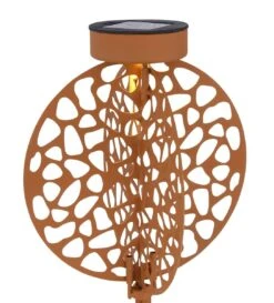 LED Solarleuchte Scheiben Mit Dekorstanzungen Im Kugel Design Rostfarbend 200mm Von Globo