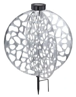 LED Solarleuchte Scheiben Im Kugel Design Mit Dekorstanzungen Antik Silberfarbend 400mm Von Globo