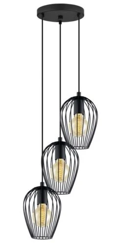 Die Hängeleuchte Drahtkorb zieht durch Ihren Vintagelook alle Blicke auf sich. Mit ihrer schwarzen Farbgebung ist die Leuchte sehr kombinationsfreudig, so dass Sie Ihren Dekorausch voll ausleben und diverse Gestaltungsmöglichkeiten ausprobieren können. Durch ihre Anpassungsfähigkeit findet sie in allen Wohnbereichen ihren angestammten Platz und kann sowohl als Primärleuchte wie als Dekoleuchte genutzt werden. Mit dieser außergewöhnlichen Pendelleuchte liegen sie voll im Trend und erzeugen mit dem Einsatz des richtigen Leuchtmittels einen Charme, bei dem sofort ein gemütliches Ambiente erzeugt wird. Besonders schön wirkt die Hängeleuchte, wenn Deko-Glühlampen im Retro-Design mit Filament- oder Glühfadenoptik eingesetzt werden. In eingeschaltetem Zustand erzeugen hierbei die Metallstreben der tropfenförmigen Lampenschirme ein harmonisches Lichtspiel und setzen dadurch sowohl die Leuchte wie auch den ausgeleuchteten Wohnbereich gekonnt in Szene. Mit dieser Pendelleuchte verleihen Sie Ihrem individuellen Wohnstil Ausdruck und geben Ihrer Inneinrichtung Charakter. Ohne aufwendige Dekoration lassen sich Vintageleuchten mit allen Stilrichtungen kombinieren und erzeugen ein individuelles Flair und altmodische Behaglichkeit. Egal ob der Charakter Ihrer Inneneinrichtung einen urigen oder modern Touch hat, eine Vintageleuchte sollte hier nicht fehlen.