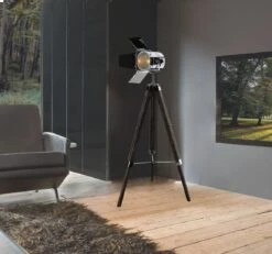 Die dekorative Stehleuchte Holly aus dem Hause Näve Leuchten erhalten Sie im Stil eines alten Bühnenscheinwerfers. Mit dieser lassen Sie das alte Hollywood in Ihr Heim einziehen. Ein Must-have für alle, die Gemütlichkeit und einen Retro-Touch in Ihre Einrichtung bringen wollen.