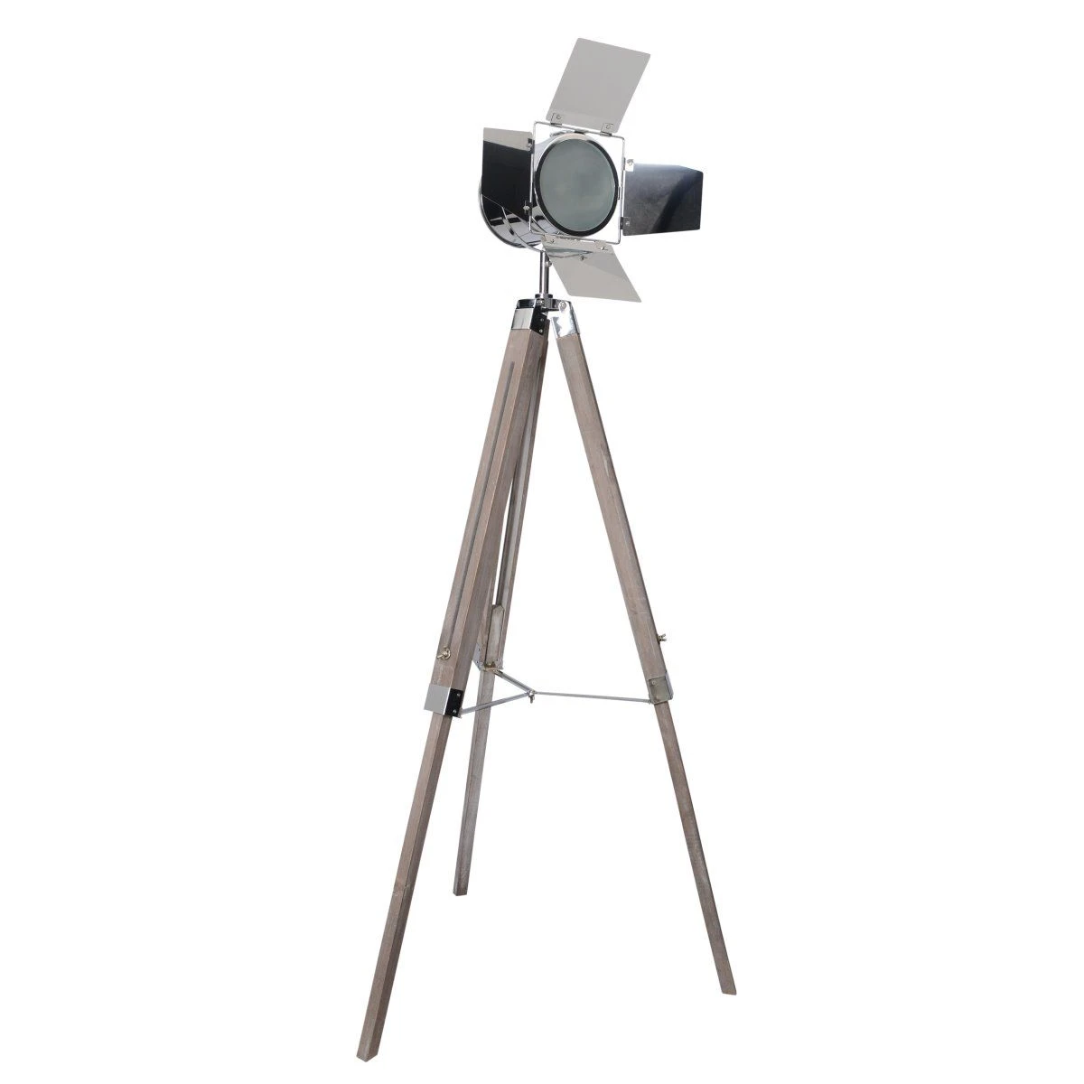 Gefertigt aus Kiefernholz und Metall ist die Leuchte mit Standfüßen in Stativform ein absoluter Blickfang für Ihre Wohnräume. In Kontrast zum Holz runden die chromfarbenen Details im Lampenschirm und am Ständer das Gesamtbild der Leuchte ab.