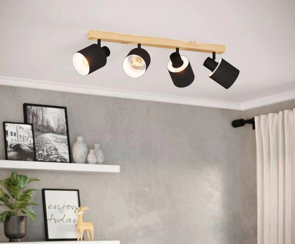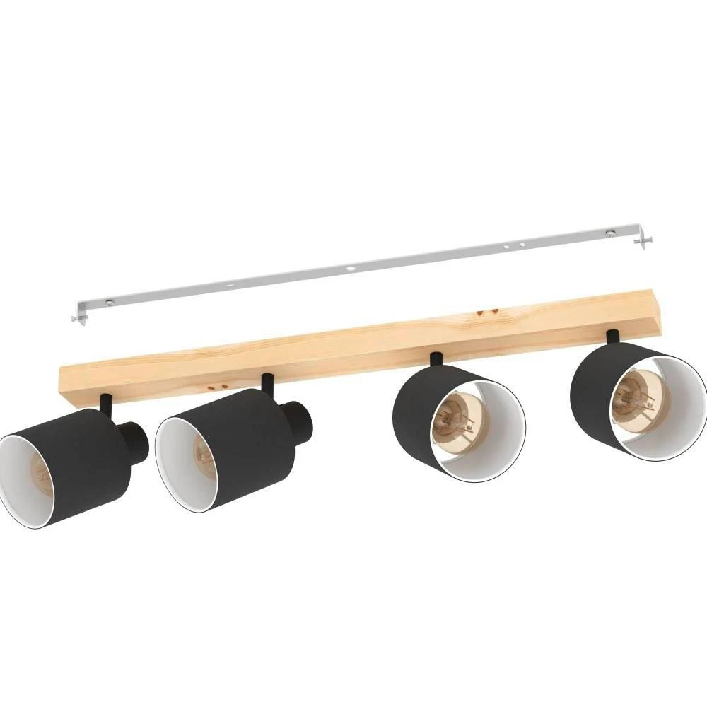 EGLO BATALLAS Deckenstrahler Holz U. Textil Braun, Schwarz, Weiß 4x E27 Dimmbar 63x5cm