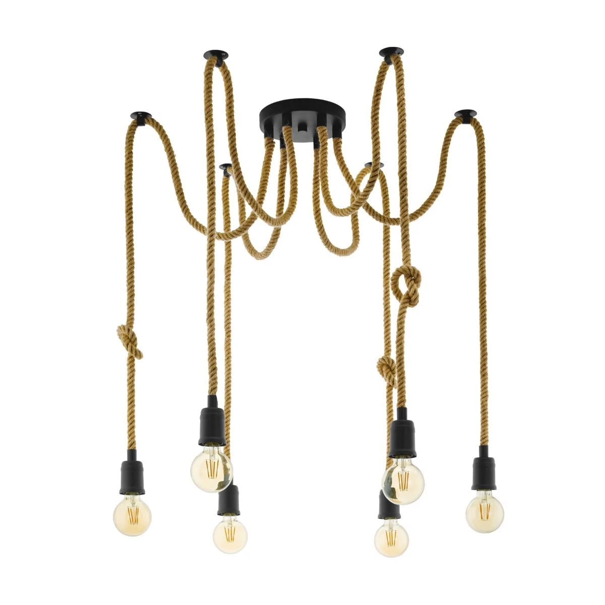 EGLO RAMPSIDE Hängeleuchte Tauseil Braun 6x E27 18x159cm Dimmbar