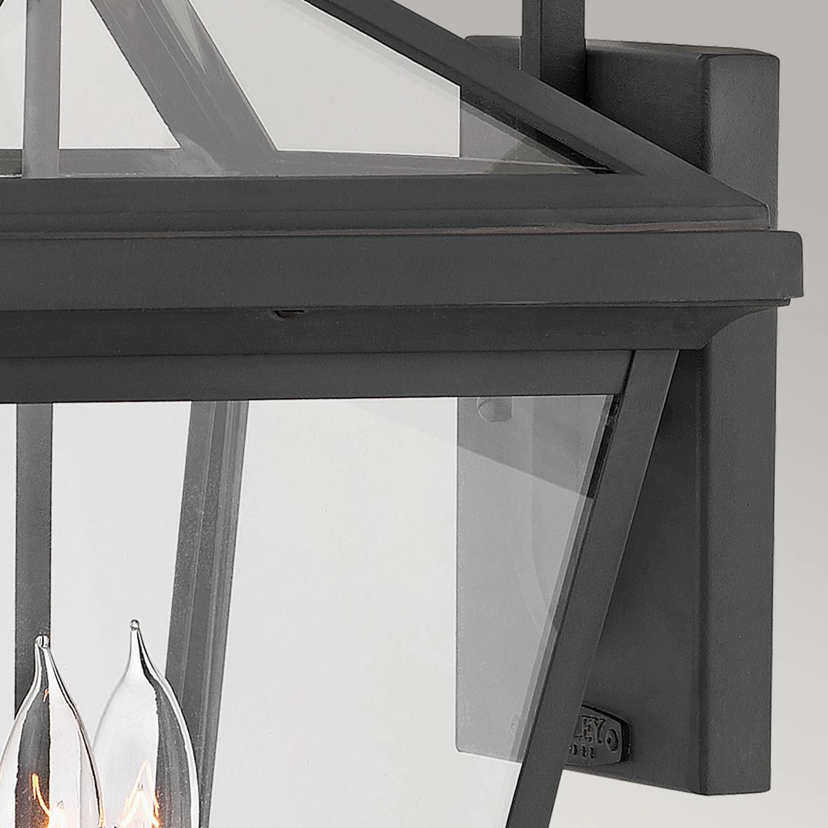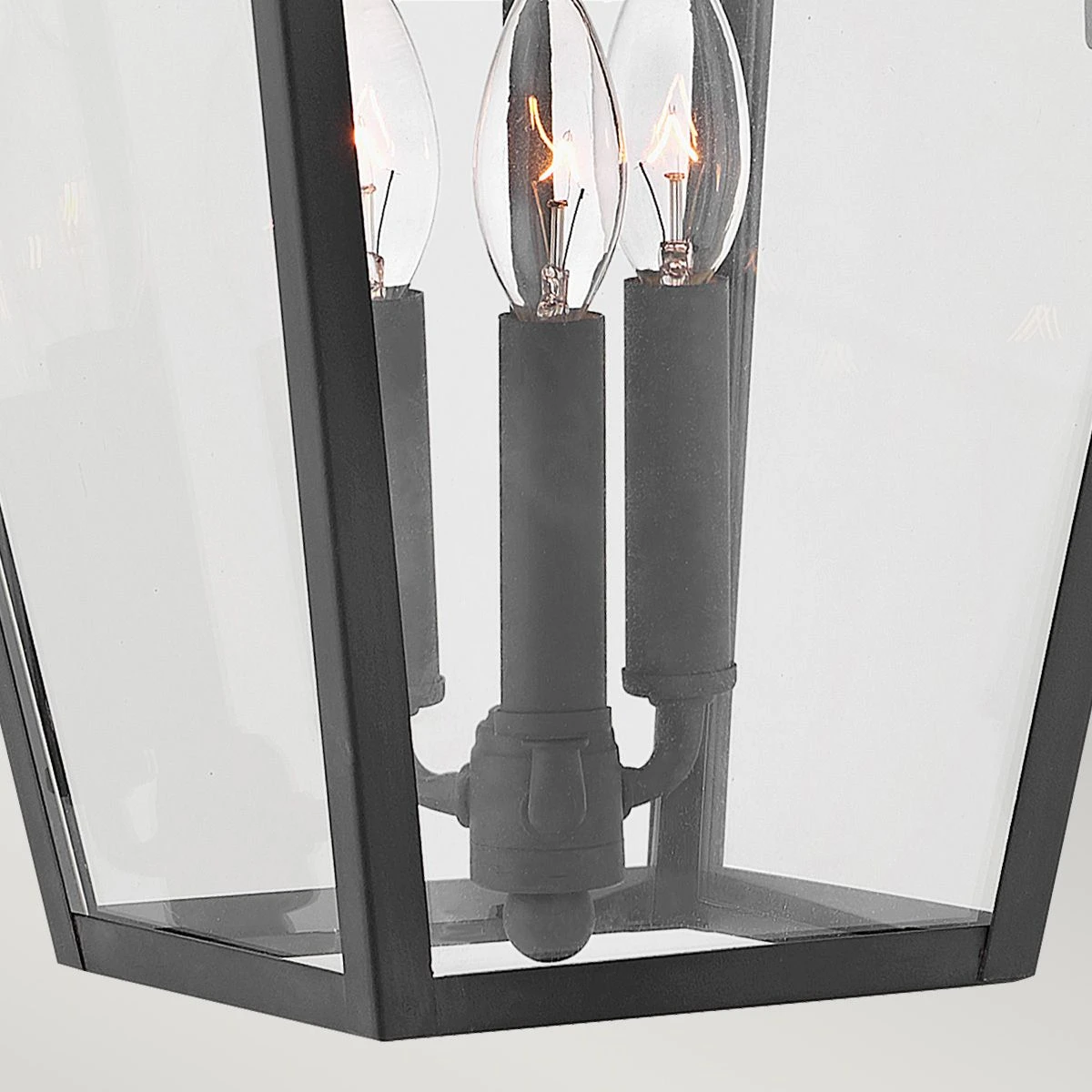 Hergestellt aus Aluminium und Klarglas ist die Außenwandleuchte in der Farbgebung Schwarz robust und langlebig. Das klare Glas sorgt für eine optimale Lichtverteilung und lässt die Schönheit der Leuchtmittel zur Geltung kommen. Die Leuchte verfügt über drei E14-Fassungen, die mit den meisten handelsüblichen E14 Glühbirnen mit maximal 40 Watt kompatibel sind und eine angenehme Beleuchtung erzeugen.
