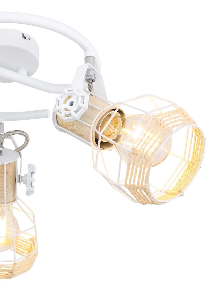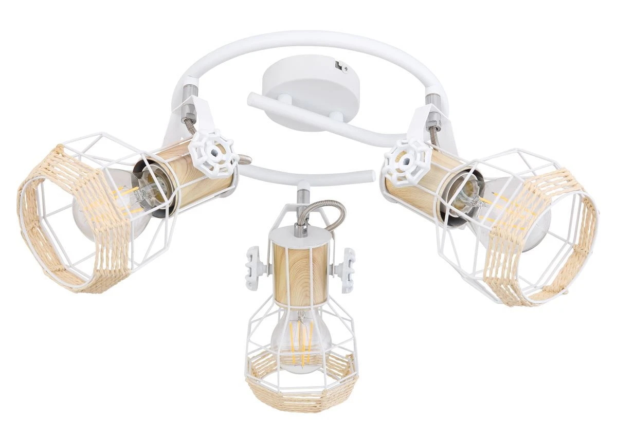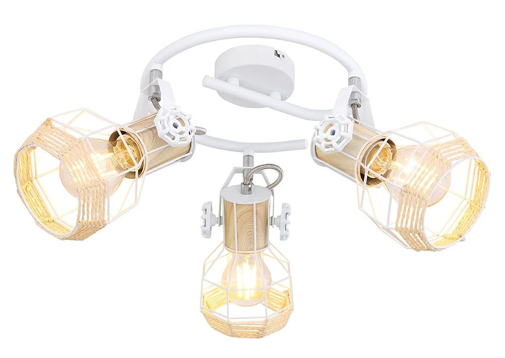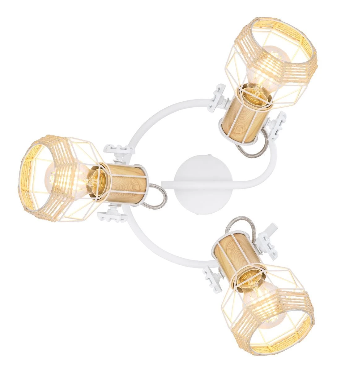 Globo Bana Deckenstrahler Weiß, Natur Holzfarbend 3x E27 Dimmbar 25x20cm