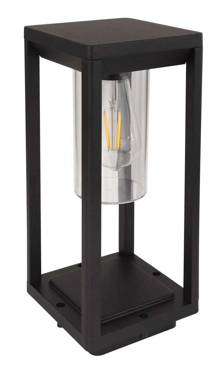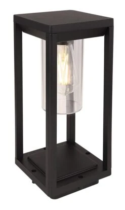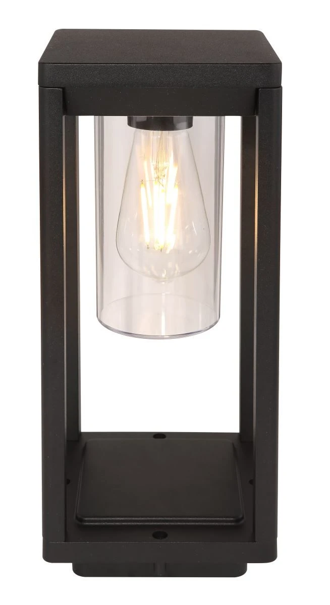 Globo Candela Sockelleuchte Schwarz Matt, Klar E27 Dimmbar 15x15x35cm