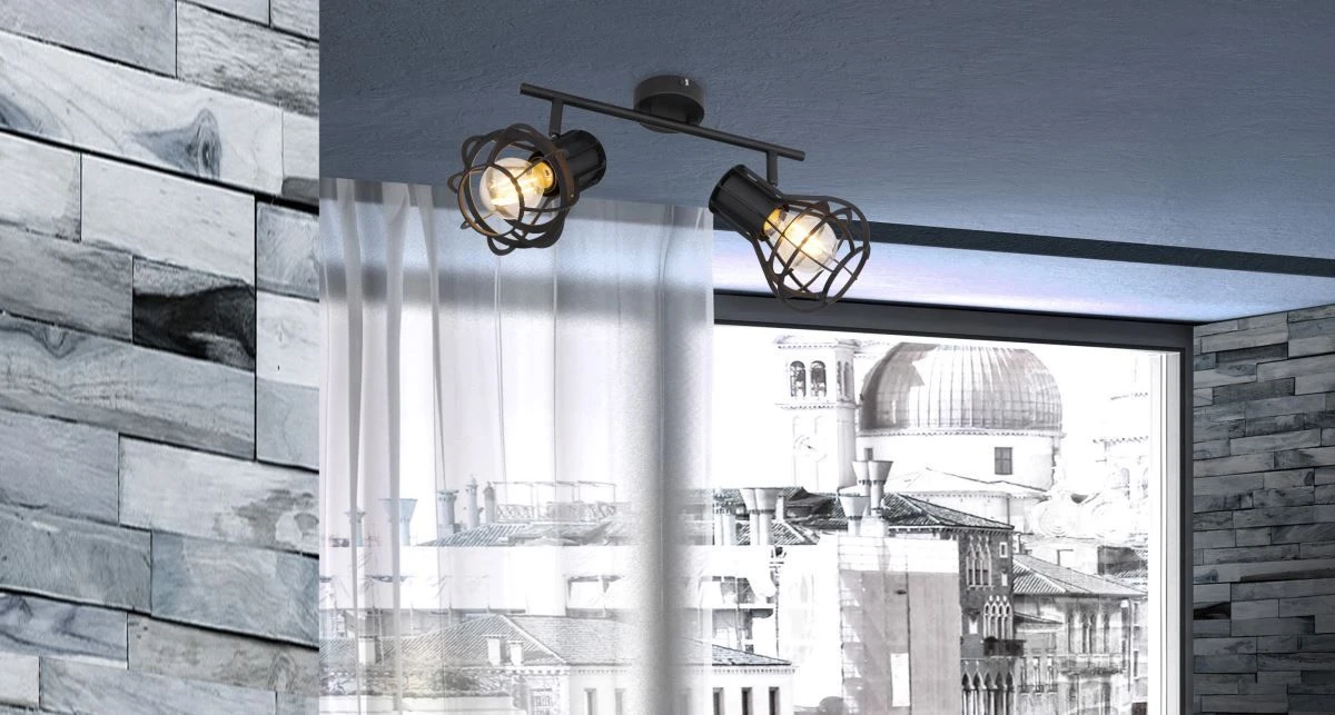 Globo Clastra Deckenstrahler Schwarz Matt 2x E27 Dimmbar 29,5x13x22,5cm