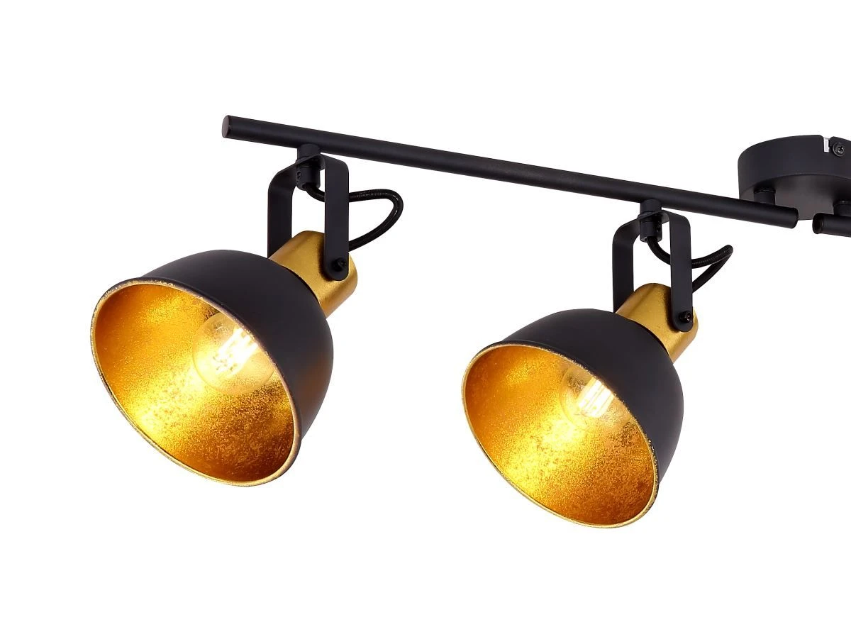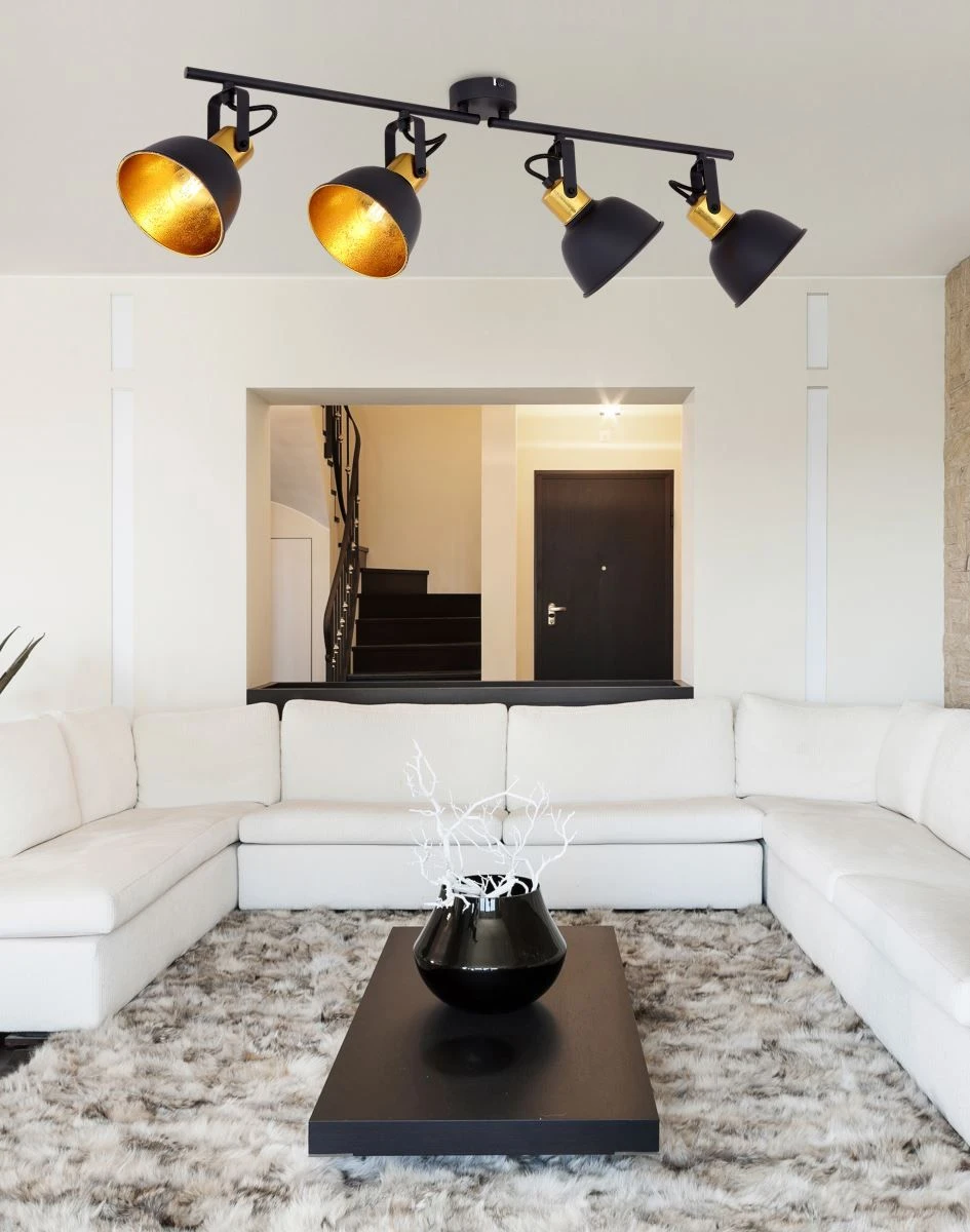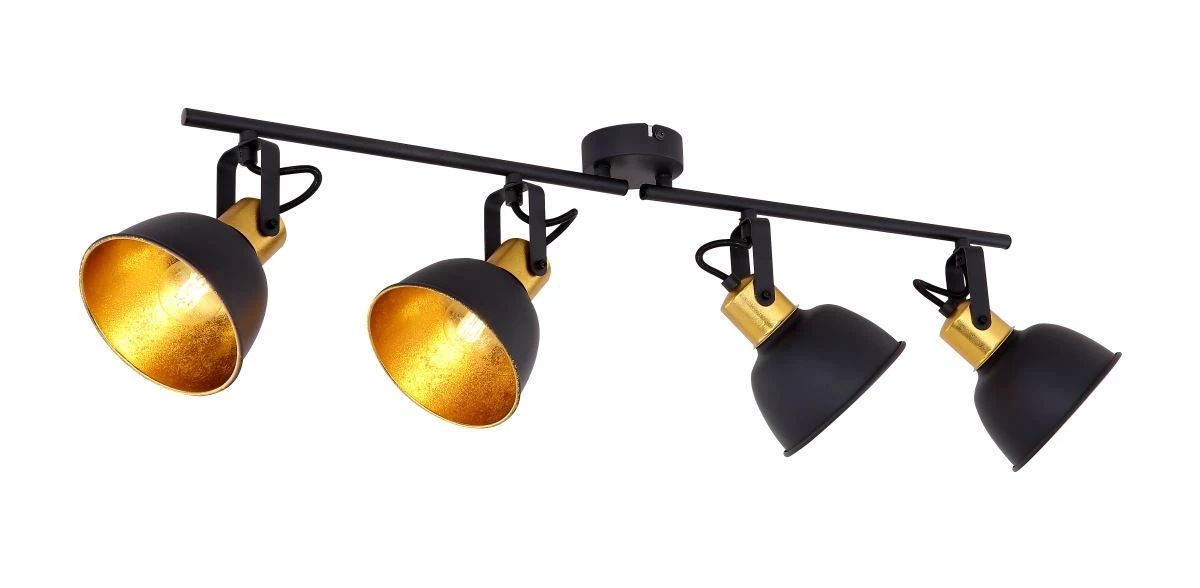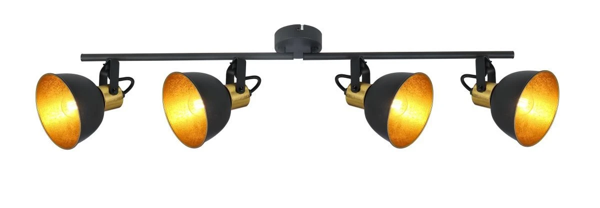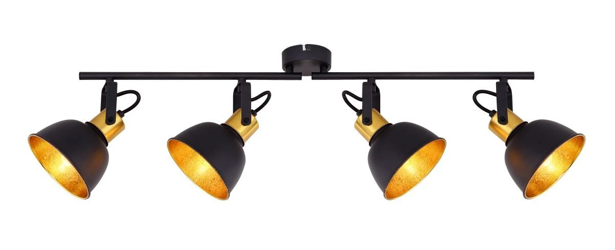 Globo Fillo Deckenstrahler Schwarz, Blattgold 4x E14 Dimmbar 72x13x19cm