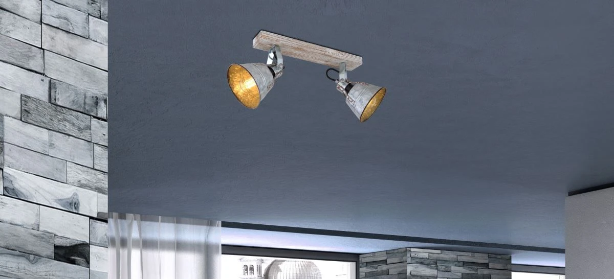 Globo Günther I Deckenstrahler Zink, Gold Patiniert 2x E27 Dimmbar 38x24cm