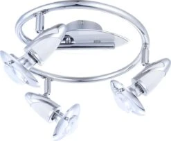 Dieser dreiflammige Strahler aus Chrom passt in viele Wohnumgebungen. Natürlich kann dieses Modell auch mit energiesparenden LED-Leuchtmittel betrieben werden.