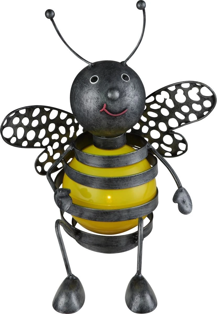 Die 25cm große Metallbiene mit Kunststoffbauch lässt sich unkompliziert auf ebener Fläche im Terrassen-/Gartenbereich installieren. Mit IP44 ist das Solarlicht bestens als Outdoorleuchte geeignet.