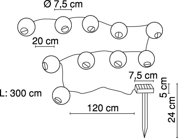 Achten Sie bei der Installation auf genügend Sonneneinstrahlung des mit einem Abstand von 120cm zur Kette verbundenen Solarpanels, da diese die Leuchtdauer der Solarlampen wesentlich beinflusst.