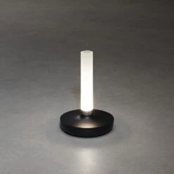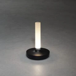 Satiniertes zylindrisches Glas trifft auf einen runden Fuß aus schwarzem rostfreien Stahl und erzeugt die modern gehaltene Tischleuchte Biarritz, welche auch als Vase verwendet werden kann. Dank satiniertem Schirm erhalten Sie ein dekoratives Leuchtobjekt für Ihren Tisch, welches ein angenehm diffuses Licht spendet. Die Leuchtenfamilie Biarritz von Konstsmide, mit einem erstklasssigen Design, gehört zu den akkubetriebenen Outdoor-Leuchten. Auf der Unterseite des Fußes kann eine USB-Ladestation angebracht werden, welche dem Lieferumfang angehört. Der Akku versorgt die inkludierte LED der Tischlampe nach voller Aufladung bis zu 9h mit Energie.