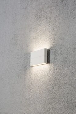 Sie sehen hier ein Produkt der „Konstsmide Modern LED Leuchten u. Lampen Serie“ Sie umfasst eine große Produktpalette von Außenleuchten und Lampen mit einem unverwechselbaren Charakter – Leuchten, die Veränderungen ankündigen. Diese moderne Wandleuchte in weiß sieht nicht nur stylisch aus, in ihrem schlicht eleganten Design, Sie zaubert auch einen schönen Lichtschein nach oben und unten.