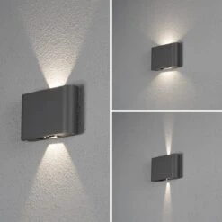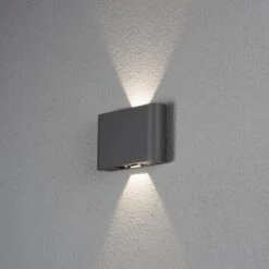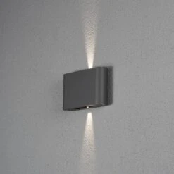 Sie sehen hier ein Produkt der „Konstsmide Modern LED Leuchten u. Lampen Serie“. Diese umfasst eine große Produktpalette von Außenleuchten und Lampen mit einem unverwechselbaren Charakter – Leuchten, die Veränderungen ankündigen. Diese moderne Wandleuchte außen in Anthrazit eignet sich mit Ihrer schlichten Eleganz für die Ausleuchtung Ihrer Fassade genauso wie für die Wand Ihrer Terasse.