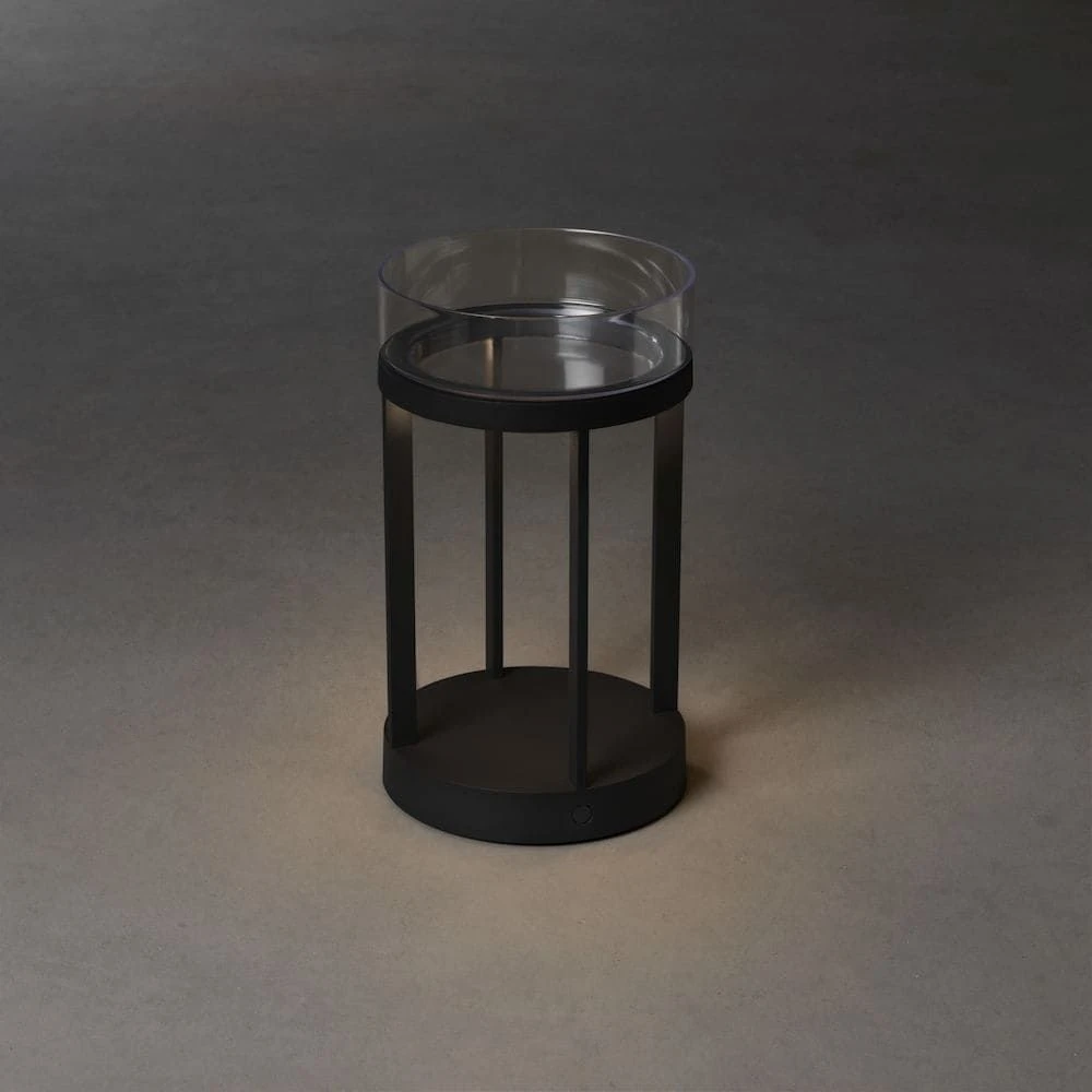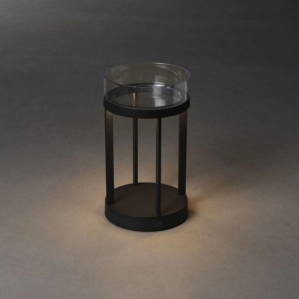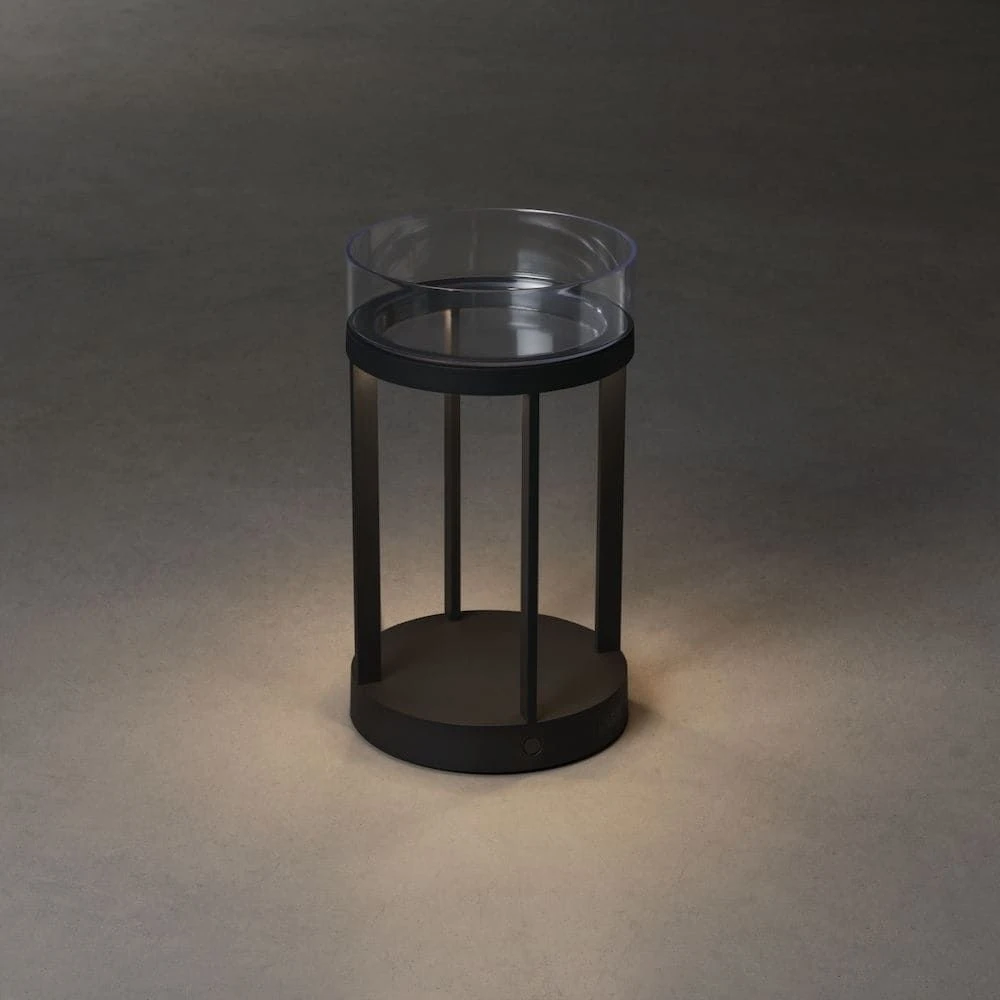 Die attraktive Optik im runden Laternen-Stil ist made by Konstsmide. Der Hersteller hat der LED-Leuchte einen weiteren Pluspunkt verschafft, indem diese mit einer abnehmbaren Glasschale oberhalb ausgestattet wurde. Diese können Sie gern mit Dekomaterial befüllen und Ihrer Umgebung noch mehr Charakter verleihen. Achten Sie bei der Umplatzierung darauf, die Glasschale vorher von der Lampe zu nehmen, da diese sonst herunter fallen könnte. Abnehmbares Glas lässt sich dafür leichter reinigen.