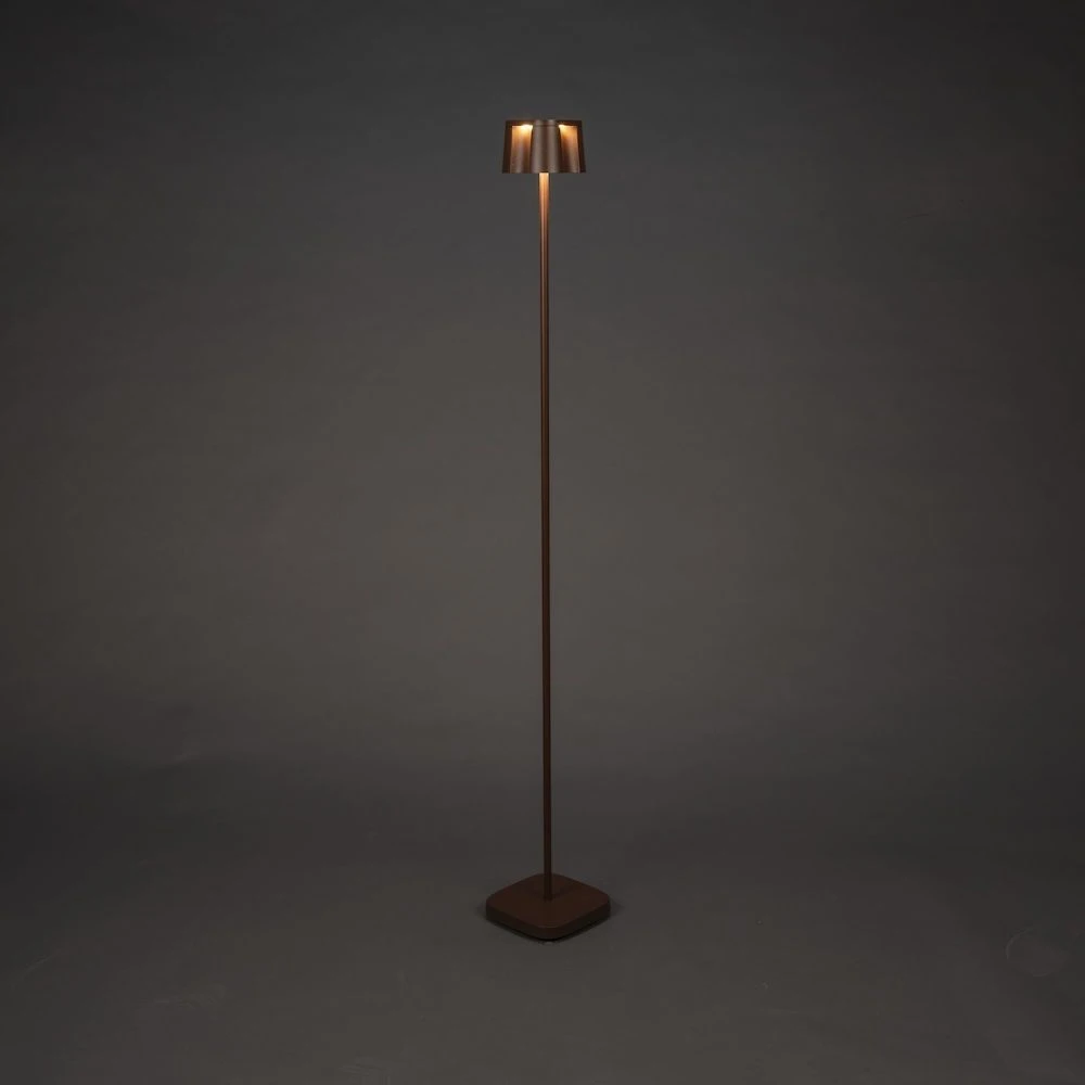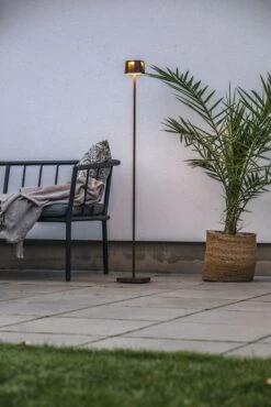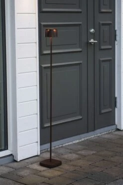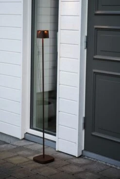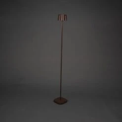 Die wunderschön geformte rostfarbene LED Standleuchte Nice erinnert in Ihrem Erscheinungsbild an die Falten eines Vorhanges, der sich sanft um das austretende Licht legt und macht ihrem Namen (Nice=Schön) damit alle Ehre. Ein auĂźergewöhnliches  Design made by Konstsmide! Das ausgefallene Ă„uĂźere bildet einen schönen Blickfang auf Ihrer Terrasse oder bei der Gestaltung Ihres Aussenbereiches. Mit einer Schutzart von IP54 ist sie bestens als Outdoorleuchte geeignet. Aber auch im Innenbereich kann diese Leuchte verwendet werden. Aufgrund der Ausstattung der Stehlampe mit einem Akku erhalten Sie die Möglichkeit Nice immer wieder neu zu platzieren – auch im Wohnbereich. Wenn die Nächte nicht mehr zum verweilen auf der Terrasse einladen, holen Sie Ihre Lieblingsleuchte einfach herein und machen es sich im Innenbereich bequem.