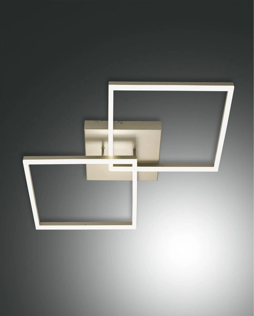 Diese moderne stilvolle Rahmenleuchte in einer Gesamtlänge von 65 cm besticht mit Kreativität und Design was typisch für den italienischen Hersteller Fabas Luce ist. Die zwei versetzt angebrachten Rahmen an einem Metallgestell haben eine Abdeckung aus Methacrylat und geben ein optimales angenehmes warm weißes Licht der verbauten LED ab, die auch dimmbar sind. Wenn Sie etwas besonderes suchen liegen Sie mit dieser Rahmendeckenleuchte in edelmatt Gold die alle Blicke auf sich zieht richtig. Ob Wohnzimmer, Esszimmer oder Flur alles ist möglich mit der Serie Bard.
