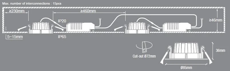 Die Produktfamilie Dorado von Nordlux gehört zu den rund geformten Einbauleuchten. Dorado lässt sich dank schraubenloser Steckverbindung und einem Twist-Lock-System ruckzuck montieren. Dabei ist eine Parallelschaltung von mehreren dieser Leuchten möglich. Maximal können 15 Stück dieser Einbauleuchten miteinander verbunden werden. Das eingebaute LED ist sogar über einen Wanddimmer (nicht im Lieferumfang enthalten) dimmbar und strahlt mit 2700K ein warmweißes Licht ab. Aufgrung seiner Schutzart von IP65 ist die Einbaulampe Dorado auch für Feuchträume, wie das Badezimmer geeignet.