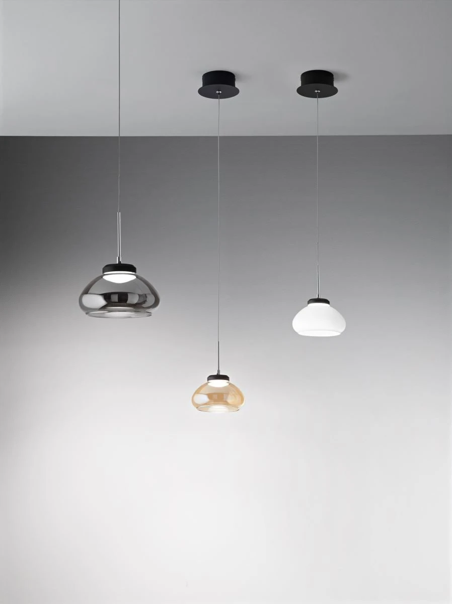 stylische, unaufdringliche LED-Pendelleuchte mit markantem geblasenen Glas