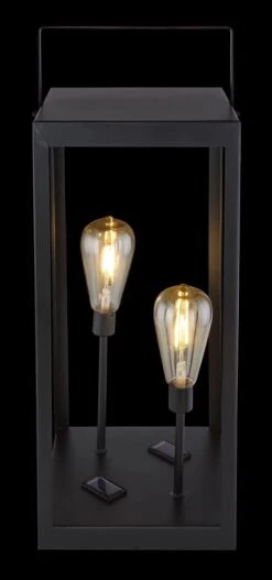 Bestehend aus einem schwarzen Metallgestell werden zwei verbaute amberfarbene LED Leuchtmittel von diesem umschlossen.