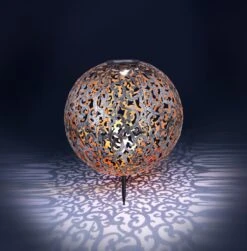 LED Solarlampe Kugel 285mm Im Dekorgeflecht Silber Antik Von Globo