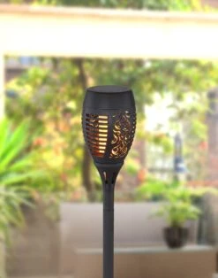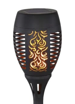 Und die Installation? Schalten Sie die Leuchte mittels Schalter ein und setzen Sie die 50cm große schwarze Erdspießleuchte aus Kunststoff ganz einfach in den weichen Gartenboden. So schnell ist die Gartenfackel installiert.