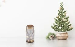 Im Inneren des Glases können Sie eine warmweiß leuchtende Lichterkette entdecken. Sie besteht aus 10 einzelnen LEDs mit je 0,06W, welche über das im Deckel befindliche Solarpanel plus Akku gespeist werden.