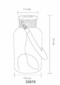 Unterstütz wird der Look durch ein dekorativ um den Flaschenhals gewickeltes Hanfseil. Ein weiteres Hanfseil ist als Henkel am Glas befestigt und bietet Ihnen die Möglichkeit Ihr Solarglas hängend zu präsentieren.