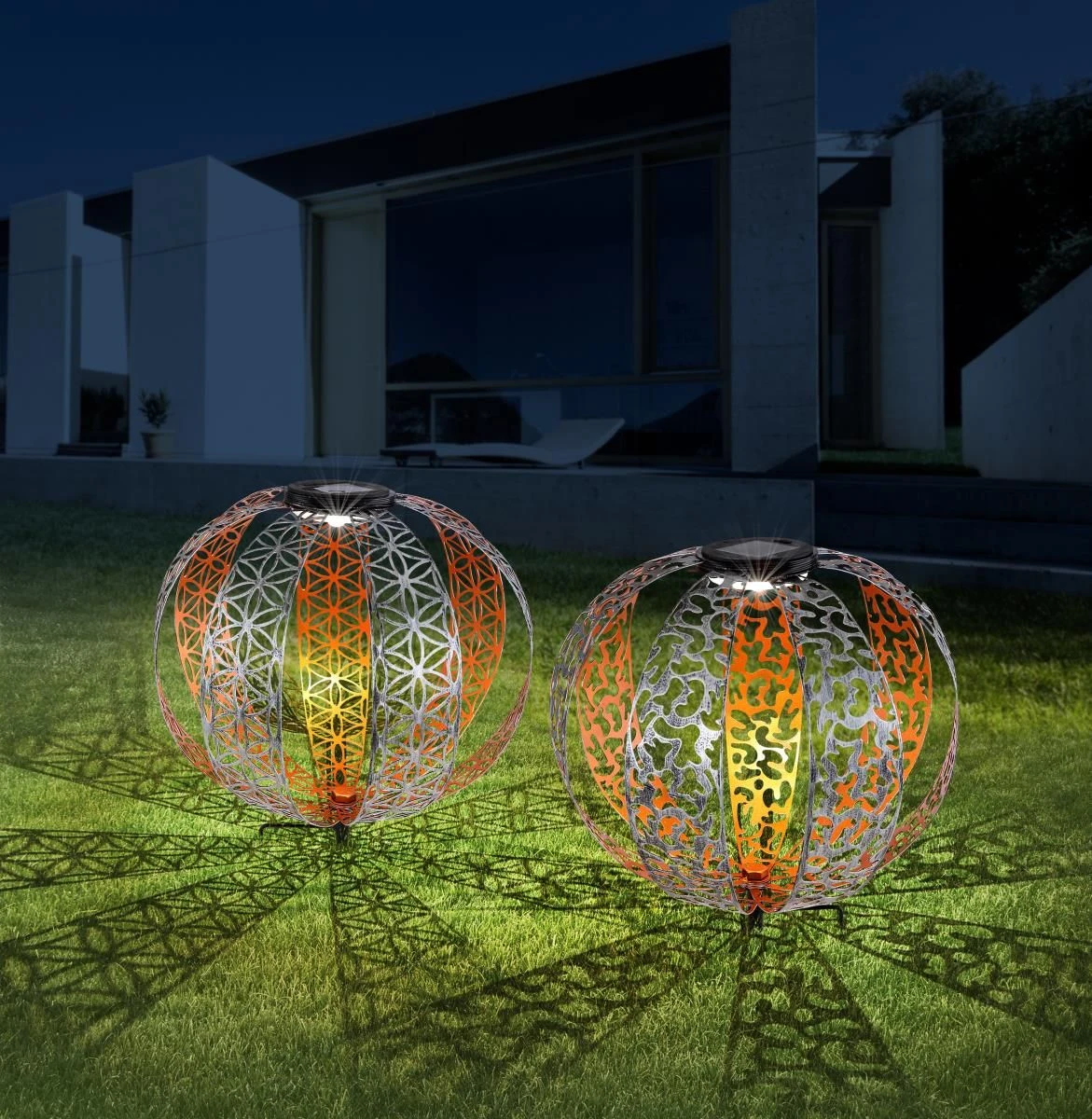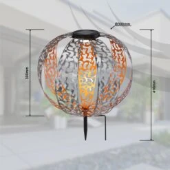 Das schöne Design der außen antik-silberfarbenen Solarleuchte passt perfekt zu den unterschiedlichsten Gartenstilen und bietet eine wunderbare Ergänzung für Ihren Outdoorbereich. Verbreiten Sie darüber hinaus eine idyllische Abendstimmung mittels dieser großartigen LED Solarkugel.