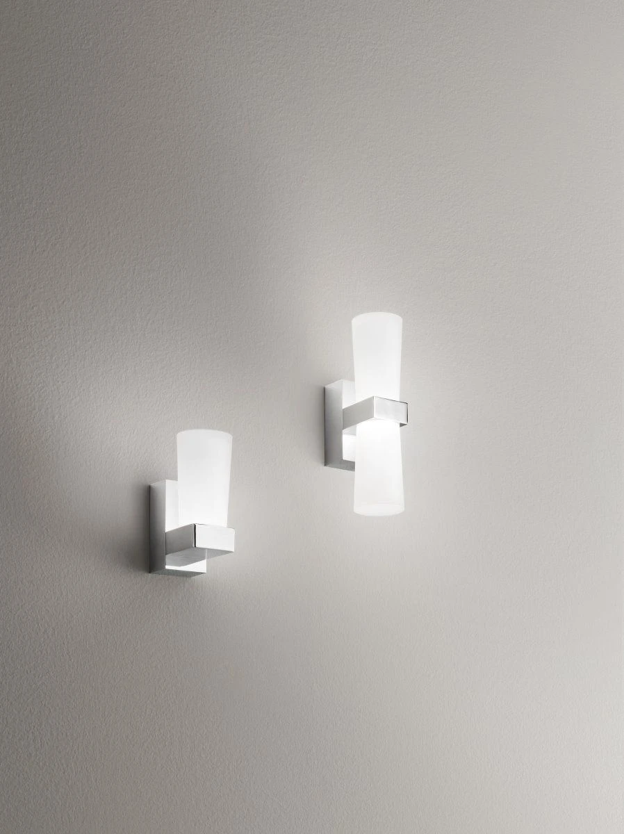 Ästhetische Bad-Wandleuchte mit homogen ausgeleuchteten, geschlossenen Aufsätzen
