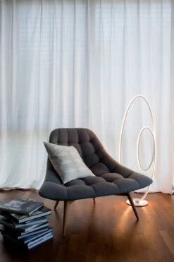 Dabei kombiniert der Leuchtenhersteller gekonnt Design mit hochwertigen Materialien und erschuf ein optisches Highlight für jeden Wohnraum. Ausgestattet mit einer fest verbauten LED-Platine mit 39 Watt erzeugt die Stehleuchte ein angenehm warmweißes Licht. Dieses lässt sich zudem über einen Drehdimmer regulieren.