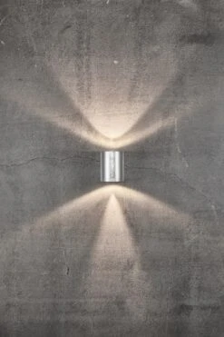 Die klare Formensprache macht die Canto 2 zu einer sehr skulpturalen und kompakten Wandleuchte im skandinavischen Design. Der minimalistische Charakter dieser Wandaußenleuchte ist dem dänischen Designer Bønnelycke MDD entsprungen. Einfach und schlicht kommt die Canto 2 verzinkt daher und hat einiges in petto. Mithilfe der im Lieferumfang enthaltenen Lichtschablonen lässt sich nämlich das austretende Licht auch noch unterschiedlich in Form bringen. Ein leichter und angenehmer Nebeneffekt dieser Schablonen ist, dass das Licht sanft abgeblendet wird. Ein toll designter Hingucker für jede Hauswand, welcher auf den ersten Blick eigentlich nur klare wohl geformte Linien aufweist. So schafft es der Designer das Licht der Wandleuchte, welches nach oben und unten ausstrahlt, und die LED Technologie in den Vordergrund zu rücken.