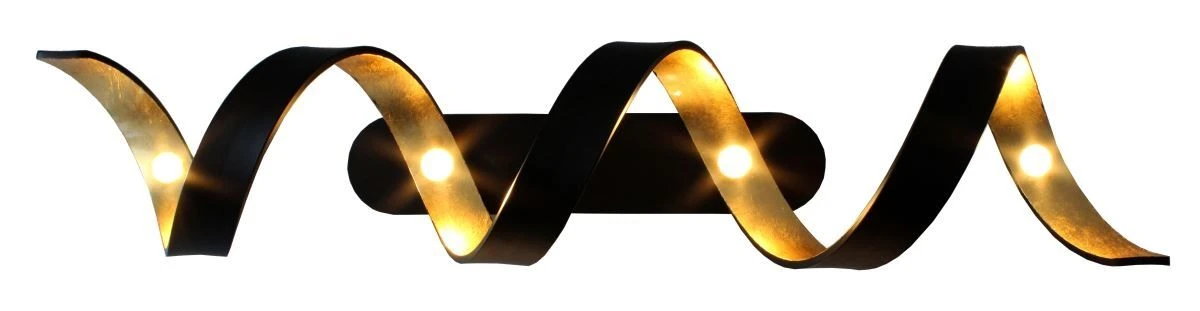 Die stilvolle Deckenlampe mit einer Länge von 80cm und einer Höhe von 35cm fügt sich ideal in moderne Einrichtungskonzepte ein. Dabei verleiht die Farbkombination aus Schwarz und Gold der Leuchte einen edlen Touch. Egal ob als Eyecatcher über dem Wohnzimmertisch, oder als Beleuchtung im Flur oder Schlafzimmer – mit Helix liegen sie genau richtig, wenn Sie Ihre Einrichtung ins richtige Licht rücken und dieser einen besonderes Flair verleihen möchten. Denn diese Wohnraumleuchte sorgt durch ihr aufwendig gestaltete Design garantiert für Aufmerksamkeit.