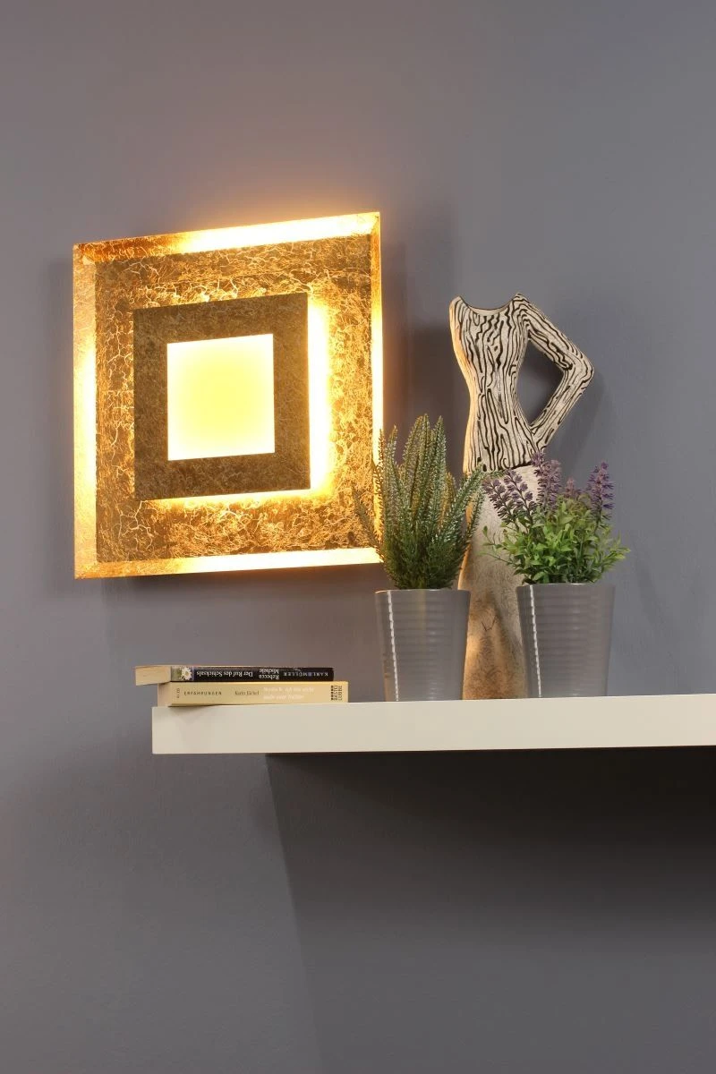 „Window“ ist ein Luce Design der Firma Eco-Light. Die quadratische Wandleuchte ist verziehrt durch eine goldene Innenfläche und einen goldenen Rand. Das Leuchtmittel sitzt dabei inmitten der Leuchte und strahlt über die goldfarbene Verziehrung aus dem Quadrat heraus. Das Licht ist dimmbar und kann somit nach Belieben angepasst werden. Bei einer Leistung von 18 Watt strahlt die Lampe mit 1200 Lumen.