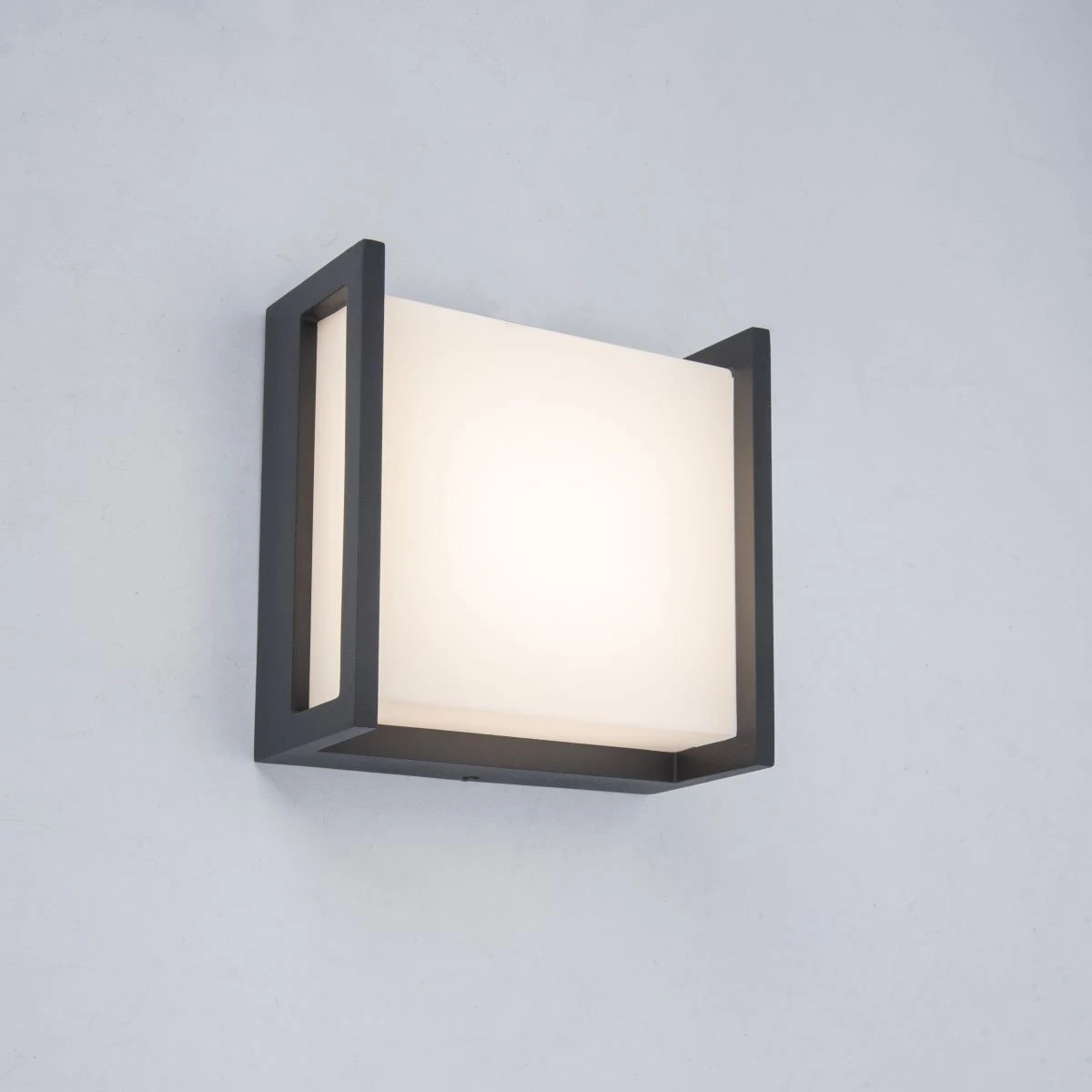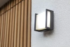 „Qubo“, ist eine sehr modern gestaltete eckige Außenwandleuchte der Firma Eco-Light. Der Rahmen kommt in einer dezenten Anthrazit-Optik und bietet viel Freiraum um dem Leuchtmittel mehr als genug Fläche zum strahlen zu bieten. Qubo leuchtet mit 650 Lumen bei einer Leistung von 8,5 Watt.