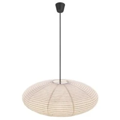 Villo 60 wird dabei ohne Aufhängung, Kabel und Leuchtenarmatur geliefert. Unter Inanspruchnahme einer von Ihnen erwählten passenden Aufhängung schwebt der 60cm in der Breite betragende Papierschirm leicht und luftig im Raum.
