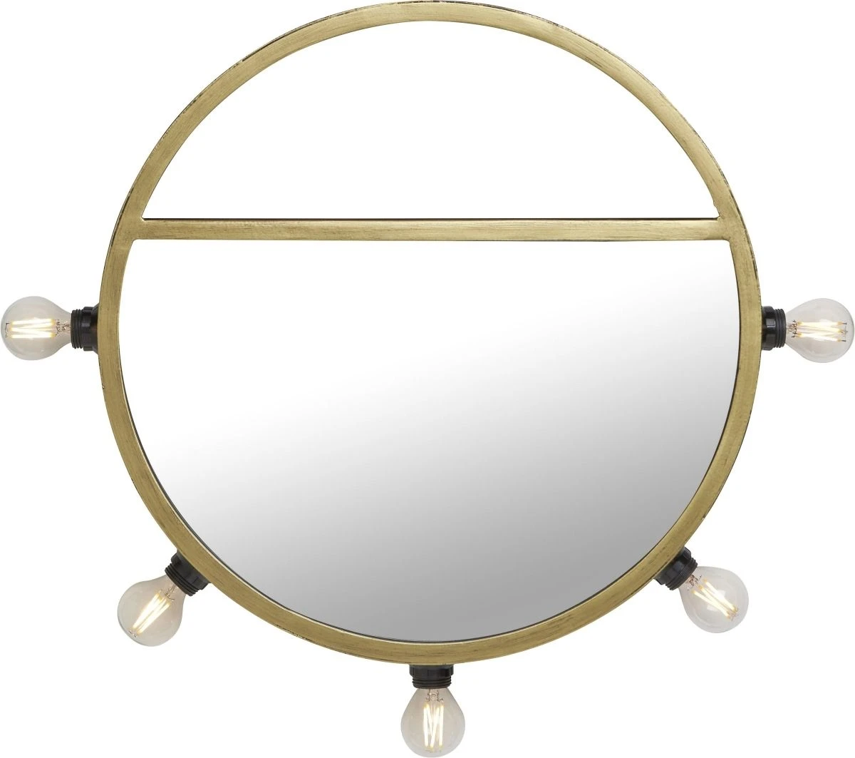 PR Home Bea Wandspiegel Matt Gold Aus Metall 45cm Rund Mit Beleuchtung U. Ablage 5x E14