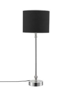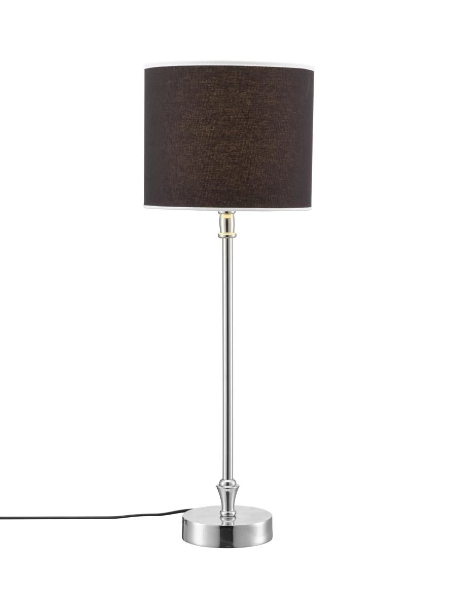 PR Home Liam Schmale Fensterbank Tischlampe Chrom Textilschirm Schwarz-weiß E27 58x20x20cm