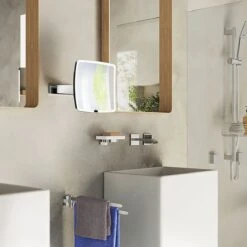 Einmal an der Wand befestigt, lässt sich der Spiegel zu dem, spielend leicht durch Schwenken in die gewünschte Position bringen. Ein problemloses Schminken und eine angenehme Rasur ermöglich Ihnen die 7-fache Vergrößerung – durch die verzerrungsfreie Optik entgeht Ihnen so sicherlich kein Makel und Rasur und Make-Up sitzen später ganz akkurat.