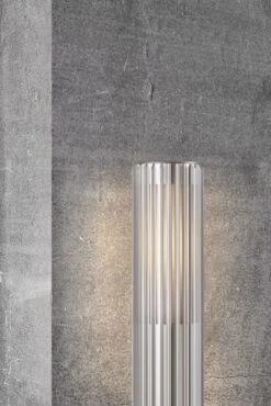 Mit der richtigen Außenbeleuchtung kann man sich nicht nur besser im Dunkeln zurecht finden, sie setzt auch Akzente, kreiert Stimmungen und betont bestimmte Bereiche im Garten. Achten Sie daher auch bei der Planung des Außenbereiches darauf wo es an Licht bedarf. Die 45cm hohe Aludra Sockelleuchte mit einer Oberfläche aus Aluminium ist aufgrund des mitgelieferten Sockels ganz einfach zu montieren. Angesichts ihrer schlanken Form dient sie hervorragend zur Beleuchtung im Eingangsbereich oder einer Einfahrt. Aludra eignet sich auch zur Installation in Parallelschaltung was die gleichmäßigen Beleuchtung von Einfahrten begünstigt. Für einen WOW- Effekt beim Heimkommen im Dunkeln sorgt der schöne Licht-, Schatteneffekt der Außenleuchte vorausgesetzt man bestückt die E27 Fassung mit einem passenden Leuchtmittel. Am Tage glänzt Aludra mit ihrem außergewöhnlich skulpturalen Design. Mit der Schutzart von IP45 ist die Sockellampe perfekt als Außenbeleuchtung einsetzbar.