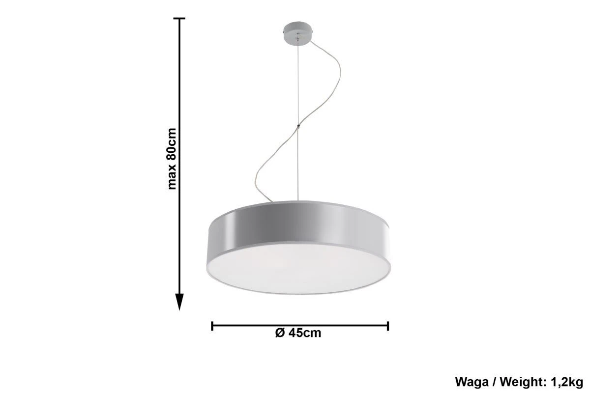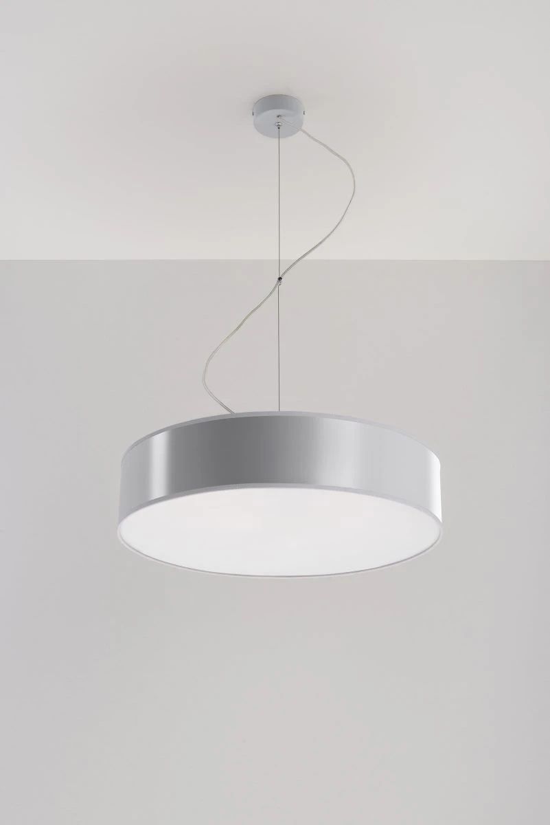 Die silberne zylindrische Pendelleuchte aus dem Hause Sollux-Lighting hat nicht nur eine einzigartige und schlichte Optik, sondern ist auch sehr gut verarbeitet. Der hängende Schirm hat einen Durchmesser von 45 cm und kann max. 80cm unter der Decke hangen. Der silberne moderne Look lässt sich wunderbar in neumodische und hochwertige Wohnungen, Cafés, Bars integrieren. Eine hohe Lebensdauer garantiert die Fertigung aus hochwertigem Kunststoff. Die Schirmfarbe lässt generell ruhiges nicht zu grelles Licht scheinen. Eine Besonderheit: Sollux-Lighting liefert bewusst kein Leuchtmittel mit: So kannst man frei wählen, ob man eine helle oder gedämpfte Beleuchtung einsetzen möchte. So schafft man mit der Lampe eine ganz besondere Atmosphäre mit Farblichtvarianten.