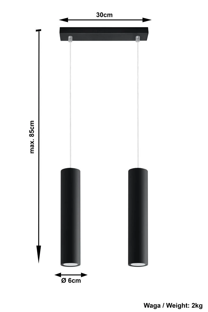 Sollux LAGOS Zylinder Hängelampe Schwarz 2-flg. GU10