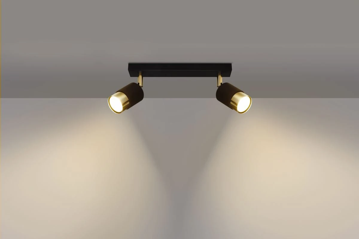 Sollux Nero 2 Deckenstrahler Schwarz, Gold 2x GU10 Dimmbar 30x5x18cm