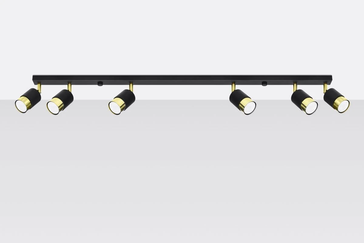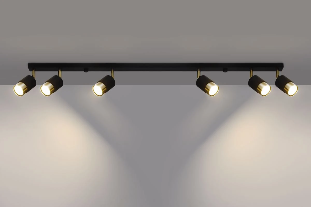 Sollux Nero 6 Deckenstrahler Schwarz, Gold 6x GU10 Dimmbar 117x5x18cm