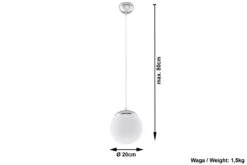 Die UGO hat einen Durchmesser von 20 cm und wird gehalten con einer verchromten Halterung. Die Gesamtlänge der Pendelhängelampe sin 80cm was den Einsatz sehr umfangreich gestaltet. Der moderne und minimalistische Look lässt sich wunderbar in modische und hochwertige Wohneinrichtungen integrieren. Die Leuchte ist aus hochwertigem Glas gefertigt, was eine hohe Lebensdauer garantiert.Die moderne Pendelleuchte aus dem Hause Sollux-Lighting hat nicht nur eine einzigartige und schlichte Optik, sondern ist auch sehr gut verarbeitet.