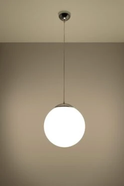 Mit der Kugelhängelampe UGO aus einer weißen Glaskugel mit 30cm Durchmesser ist es wieder einmal gelungen im modernen Wohnbereich ein Zeichen zu setzen. Durch den Glaskörper der durch eine Chromeinfassung gehalten wird kann das Licht gleichmäßig im Raum verteilen. Die Lichtstärke ist,da dimmbar, individuell einstellbar. Eine E27 Fassung macht die Auswahl der Lichtquelle leicht. Dadurch scheinen die Einsatzmöglichkeiten unbegrenzt. Die Höhe bzw. Tiefe der Hängelampe lässt sich durch unterschiedliche Aufhängung einstellen. zur Ergänzung gibt es verschiedene Größen der Glaskörper.